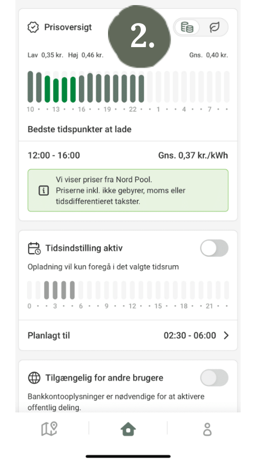 Du kan programmere din ladeboks til at oplade, når strømpriserne er lavest eller når CO2-udledningen er minimal. Dette forekommer typisk om natten, hvilket gør tidsstyret opladning til et oplagt valg.