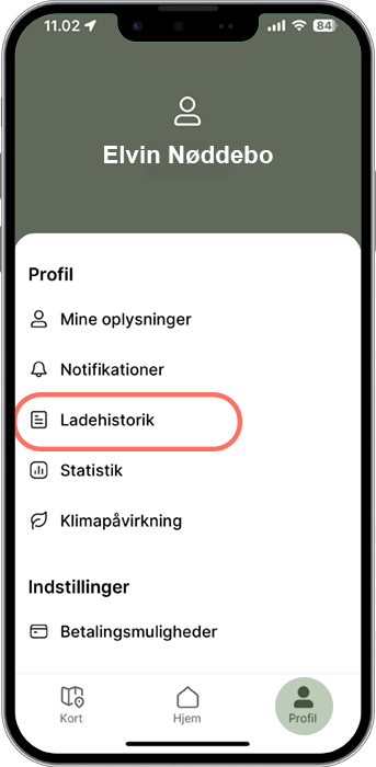 Se din ladehistorik både for hjemme ogudeladninger under Ladehistorik.
